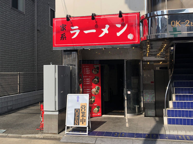 家系ラーメン「竜」さんはJR八王子駅北口より徒歩3~5分程。ドンキのわき道を甲州街道方面に向った先の手前にあります。赤い看板が鮮やか!近くまで行けば目に入ります。