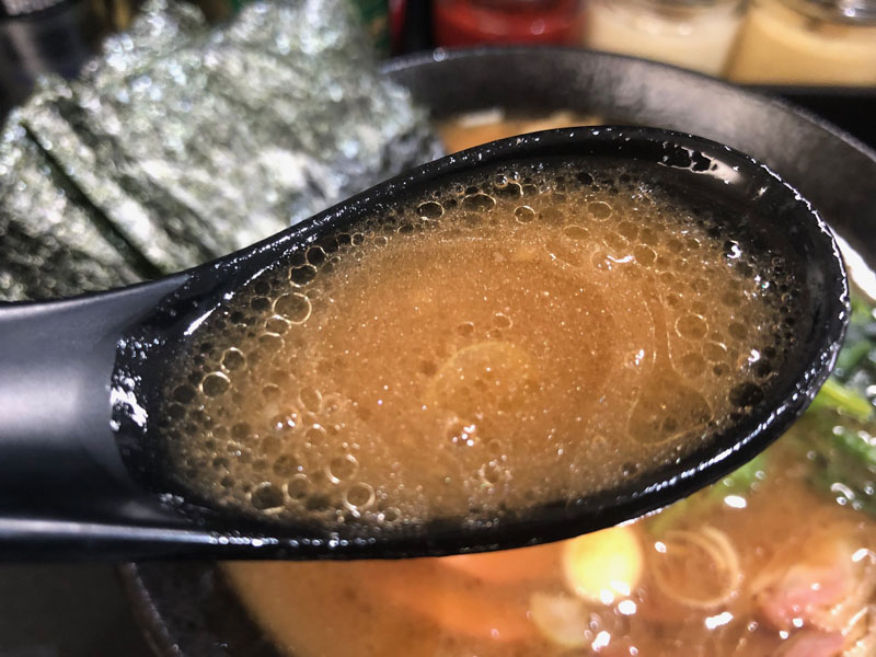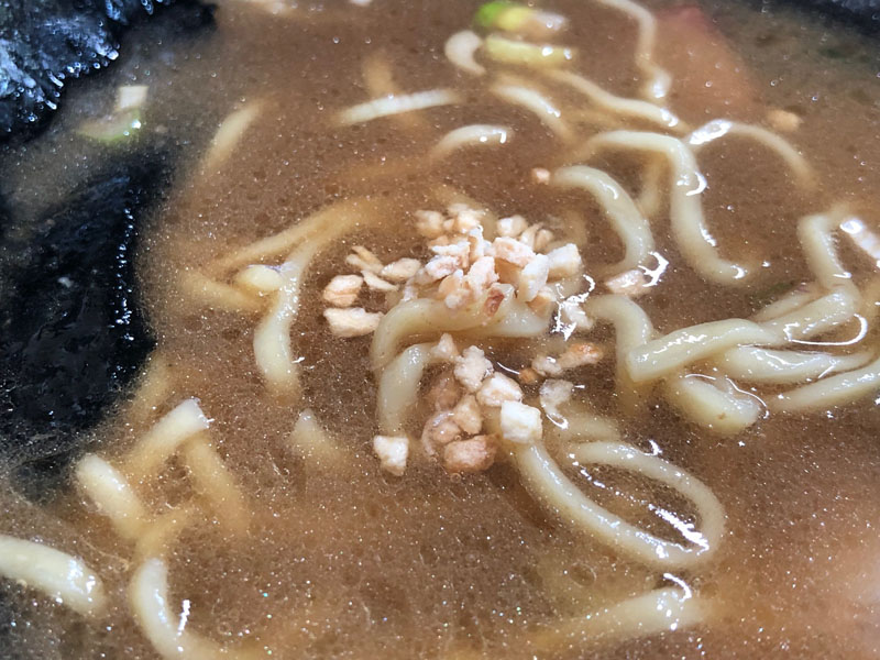 スープはしっかりと豚骨の重量感があり醤油ダレも濃いめでパンチのあるスープ。やや塩分強めなのは家系ならでは。油もやや多く感じるまったり感で、個人的にはスープ「濃いめ」油「多め」な印象。次回があったら好みに調整しよう。